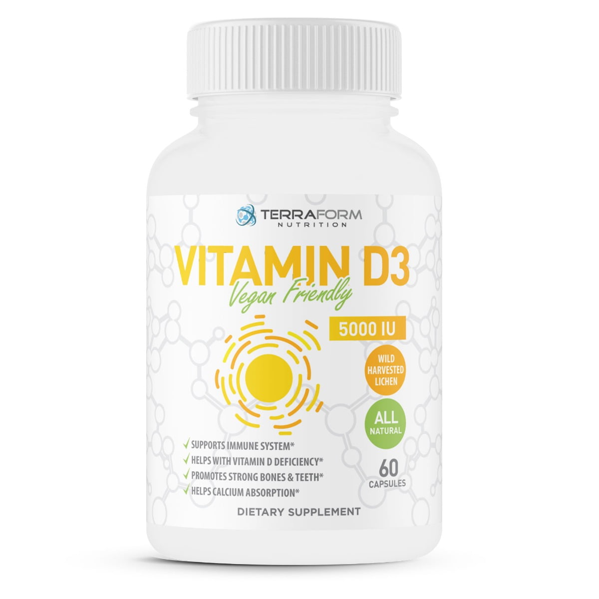 Terraform Nutrition Natural Vitamin D3 5000iu Vegan Amp Vegetarian Friendly 2 Month Supply Walmart Com